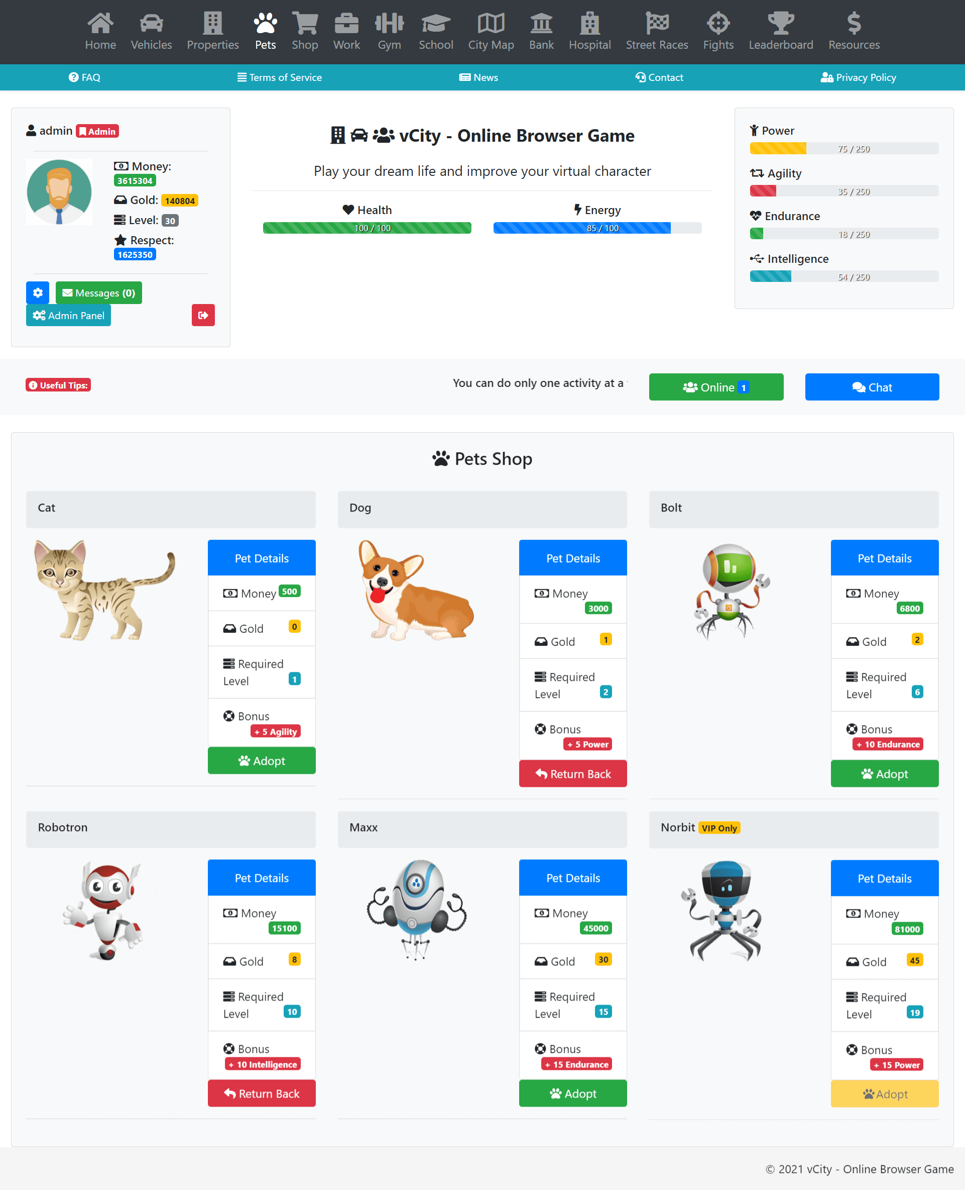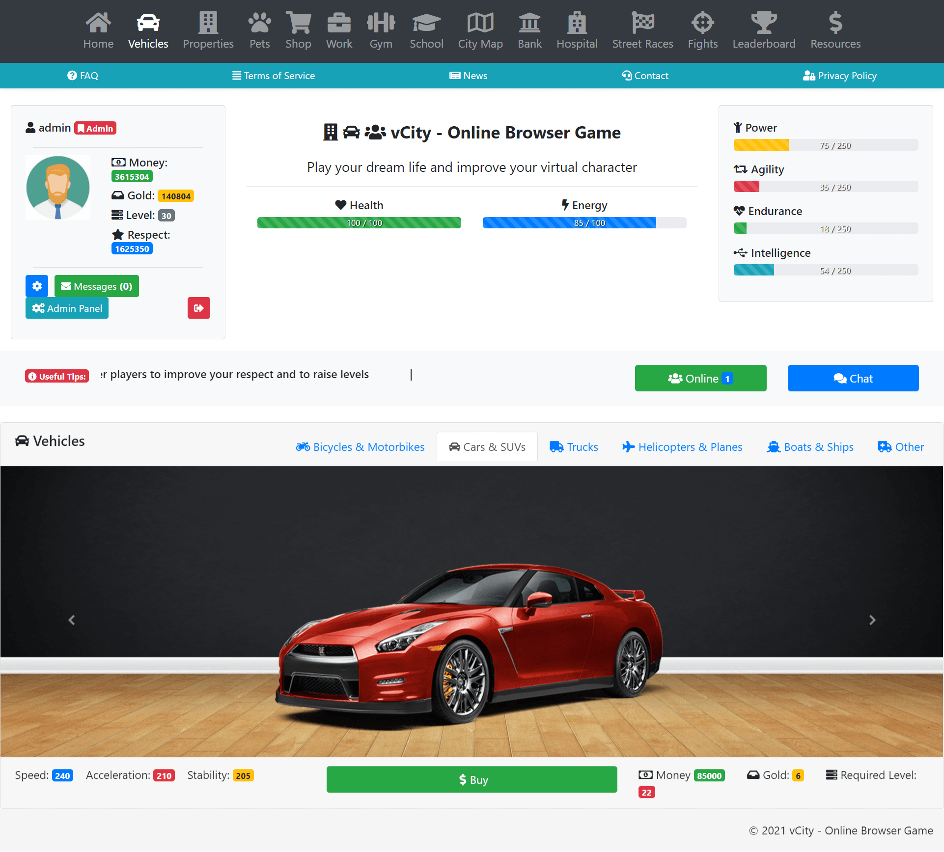 VCity es un juego de navegador en línea en el que puedes tener tu propia vida virtual. Puede comprar vehículos, artículos, propiedades y puede realizar muchas actividades.